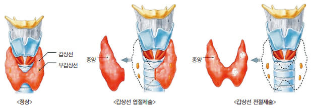 호르몬 요법: 갑상선 제거 수술 후 환자는 갑상선에서 정상적으로 생성되는 호르몬을 대체하기 위해 호르몬 대체 요법이 필요할 수 있습니다.