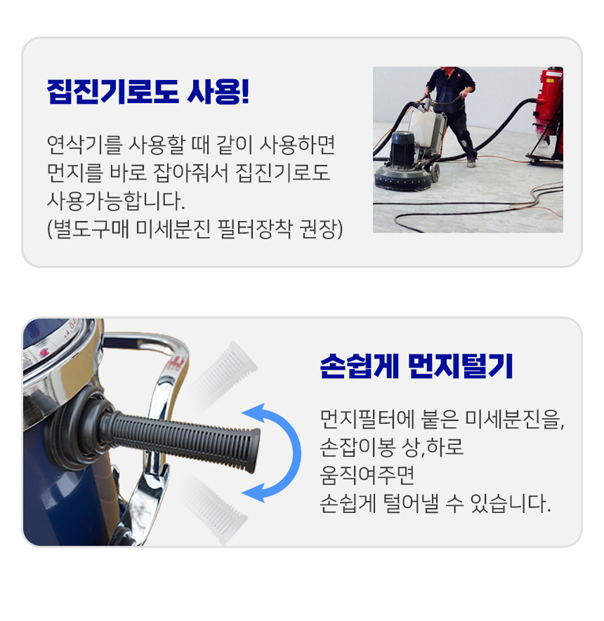 (42리터 용량의 집진기 사용 가능 / 2단 건습식 분리 모터 / 3단 싸이클론 분리기 / 미세먼지 발생 장소에서 탁월!)