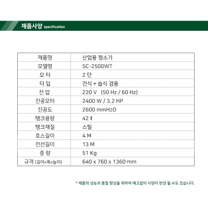 2400W 3.2HP의 강력한 흡입력! 42리터 용량